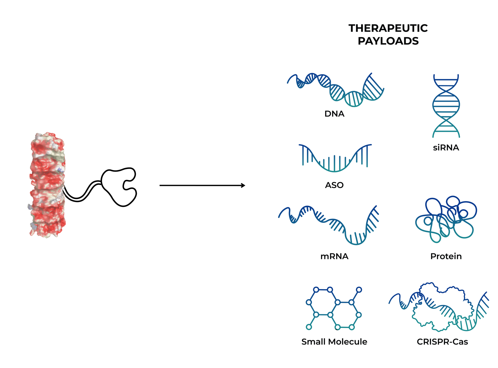 Cargo: nucleotide-based therapies (e.g. siRNA, ASOS)